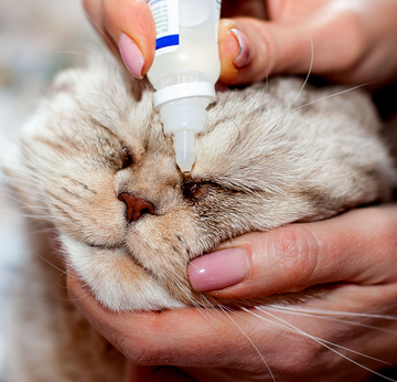 Red, watery, or swollen eyes, squints or blinks excessively, paws or rubs eyes, cloudy eyes