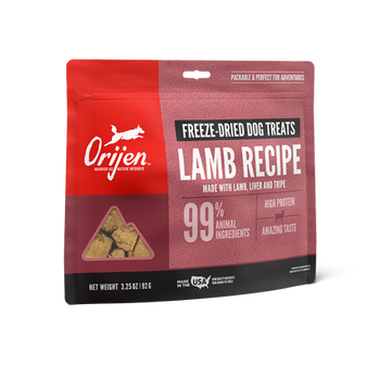 ORIJEN® Freeze-Dried Treats are packed with animal protein. Our Lamb Recipe is made with 99% animal ingredients including nourishing lamb, liver and tripe. Freeze-dried to lock in their rich nutrients and flavor, they’re packable and perfect for adventures.
